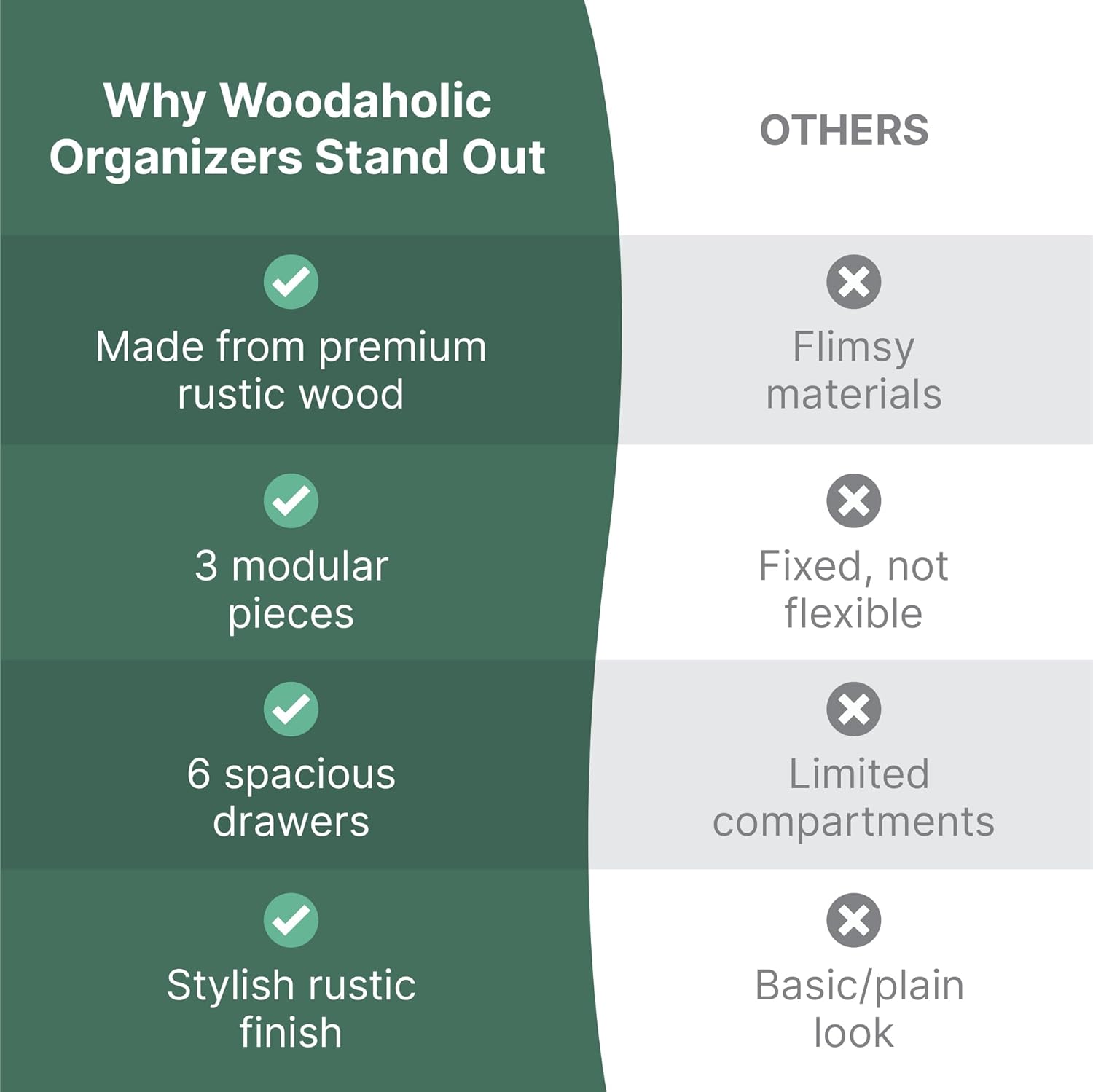 "Rustic & Functional" – "A bit rustic, some rough edges. It’s attractive, basic, functional. Holds a fair amount of desk-type odds and ends, with a smaller footprint. A little expensive for what it is."